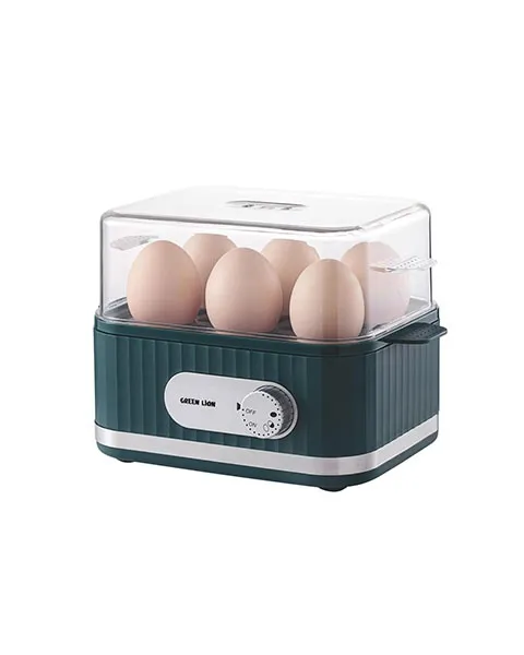 This is the Green Lion Smart Egg Cooker, a great appliance to help prepare your breakfast much faster and easier. You have 400W of power, 3 levels for cooking, and a compact design that brings comfort and ease of use. There is space for 6 eggs in its container, where you can pour water beneath it, then place the container on it and start cooking. It's as simple to clean the cooker as it is to cook. Enjoy having your favorite dish along with cooked eggs made with the Green Lion Smart Egg Cooker.