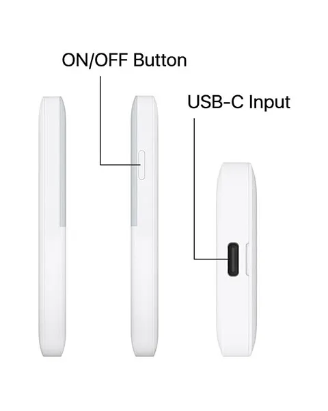 The Huawei E5586-326 Pocket WiFi is a compact and portable device, designed to provide reliable wireless connectivity on the go. It features a sleek white design with dimensions of 110 mm x 55 mm x 11.8 mm, and is powered by a 1500 mAh battery, offering a convenient battery-powered solution for mobile internet access. The device supports Wi-Fi 4 with a theoretical speed of 300 Mbps on the 2.4 GHz band and allows up to 16 devices to connect simultaneously. It also comes with built-in Wi-Fi and 4G/3G antennas, with external antennas that are removable for improved signal strength. The Huawei E5586-326 is charged via a USB-C interface with a 5V/2A power supply, and it can be managed through the Huawei AI Life app, available for both Android and iOS.