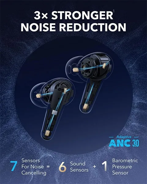 Matchless Noise Cancellation: Liberty 4 Pro noise cancelling earbuds boast 7 sensors—6 sound sensors and 1 barometric pressure sensor—to capture noise from every angle. From planes to trains, enjoy a serene journey with 3× stronger noise reduction.