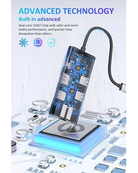 5-in-1 USB-C Hub: Turn a single USB-C port into five ports for data transfer, display expansion, internet connection, and charging.