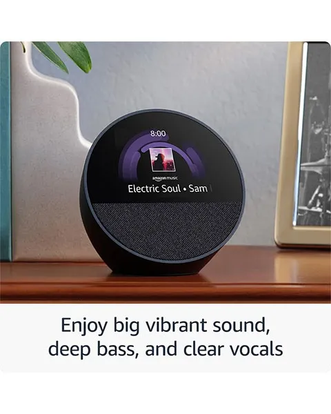 The Amazon Echo Spot 2024 is a versatile and compact smart device that combines the functionality of a smart speaker with the convenience of a display screen. Featuring a sleek, spherical design, the Echo Spot offers a 2.5-inch circular display that is perfect for video calls, watching news briefings, and displaying time, weather, and other visual content. Equipped with Amazon's Alexa voice assistant, it allows users to control smart home devices, play music, set alarms, and get information hands-free. The device supports video calling and messaging, integrates with various streaming services, and offers enhanced sound quality for a superior audio experience, making it a perfect addition to any room in your home.