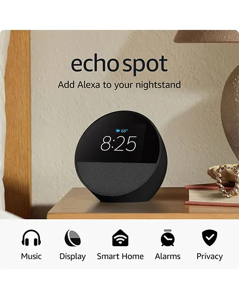 Amazon Echo Spot Smart Alarm Clock with Alexa-Black