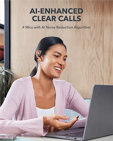 AeroFit open-ear headphones feature 4 mics and an AI Noise Reduction Algorithm to offer pristine call quality for everyday conversations.