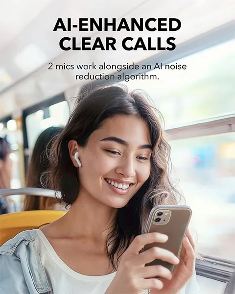 Clear Call Quality: soundcore K20i earbuds feature AI-powered noise reduction technology that precisely isolates your voice from background noise. With dual-mic ENC, maintain pristine call clarity even in bustling environments.