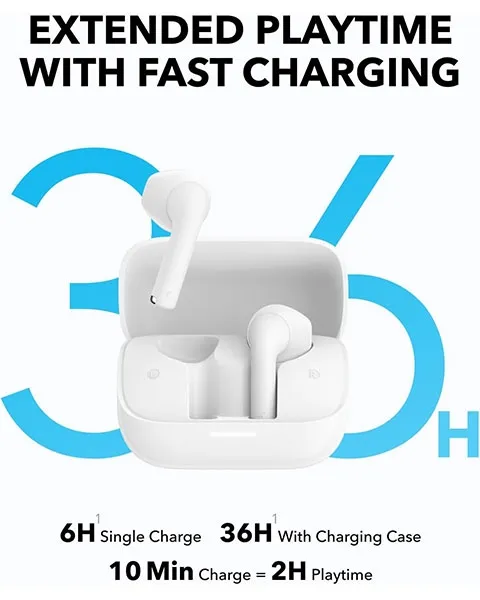 Extended Playtime: Enjoy up to 36 hours of music with soundcore K20i's charging case. A quick 10-minute charge gifts you an additional 2 hours of playback, so you're always ready to dive into sound, anytime, anywhere.