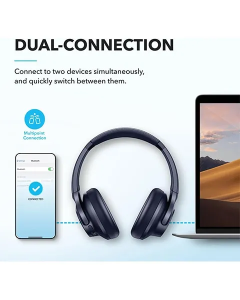 Dual-Connections: Connect to two devices simultaneously with Bluetooth 5.0 and instantly switch between them. Whether you're working on your laptop, or need to take a phone call, audio from your Bluetooth headphones will automatically play from the device you need to hear from.
