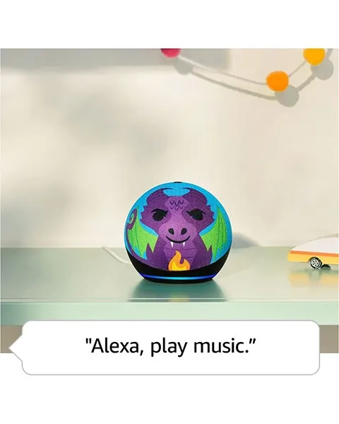 Our most popular and cutest smart speaker with Alexa is made for kids (not a toy). The improved speaker delivers clearer vocals and rich, vibrant sound. Kids can ask Alexa to play music, read a bedtime story, get help with their homework, and more. Stream songs from Amazon Music, Apple Music, Spotify, and others. Alexa will automatically give kid-friendly responses and filter explicit songs. You can also set daily time limits and review activity in the Amazon Parent Dashboard. Kids can help take charge of their routines with Alexa by setting their alarms, turning off compatible smart lights, and calling parent-approved friends and family. Kids can customize the way their Alexa sounds with a pretend owl or dragon voice, along with character-inspired songs, jokes, and greetings.