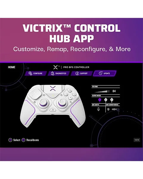 Step-up your competitive gaming level with this professional controller, built for PlayStation and PC. Full customization and top performance gives players the edge with precision thumb sticks, triggers and buttons for PlayStation 5, PlayStation 4, and PC. Pro BFG includes 4 interchangeable analog sticks, w/stainless steel shaft for smoother movements. The Victrix Control Hub PC App allows you to customize, calibrate, run diagnostics and update controller firmware. Built for all kinds of competitive gameplay, the Left Module can be flipped 180 degrees to personalize your style of play. The Right Module can be swapped out for standard or fight pad style control. The back of controller has a profile button with LED allowing you to map the back buttons and toggle through the profile settings. 3 profiles can be stored in the controller’s memory. Ready to travel, Pro BFG includes a sleek durable carrying case that holds all your cables, modules, and extra pieces like USB-C cable (3m) and Module Customization Tool to install and remove modules. The Victrix Pro BFG Controller includes 14 swappable components to transform the controller to match your game and your play style.