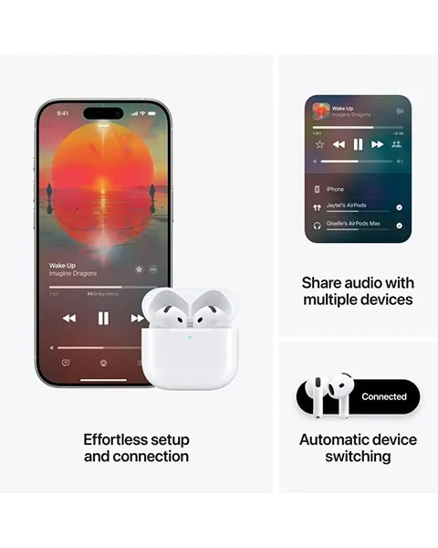 The Apple AirPods 4 ANC Wireless Earbuds let you experience active noise cancellation in an open-ear design, which reduces noise like traffic and engines. Moreover, the adaptive audio blends transparency and noise cancellation, adjusting to your surroundings.