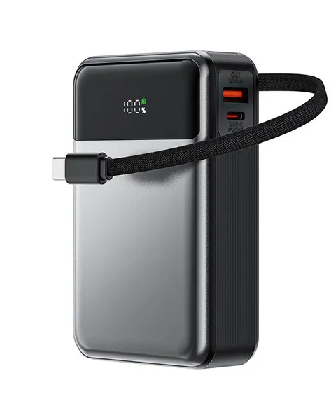Built-In USB-C Cable: Conveniently comes with a fast-charging USB-C cable for both input and output.