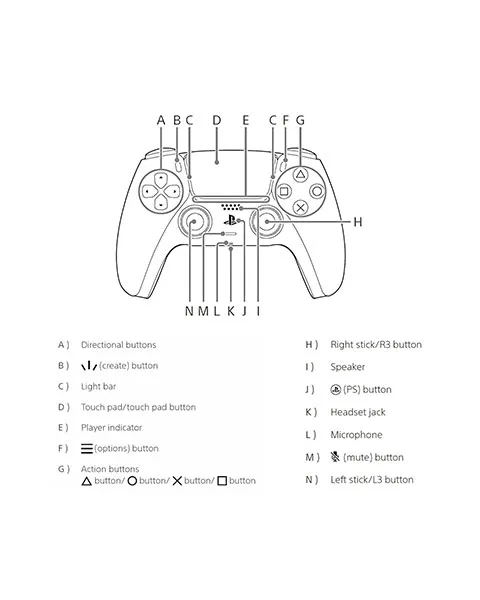 Buttons: PS, Create, Options, Directional Buttons, Action Buttons, Triggers, Touch Pad, MUTE