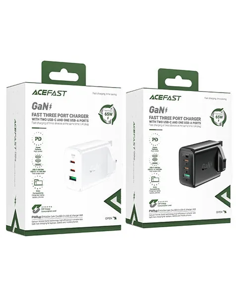 Product Overview: The Acefast A44 charger features GaN technology, offering a fast 65W charge via its USB-C port. Key Features: GaN Technology: Small, lightweight, and highly efficient. Universal Compatibility: Works with a wide range of USB-C devices. Portable and Compact: Easy to carry for travel or daily use. Technical Specifications: Dimensions: 87.9 x 52.8 x 48.4mm, 143g High power: 65W (max.). Compatibility: USB-C devices including smartphones, laptops, and tablets.