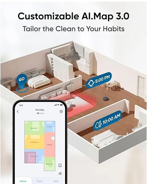 - Customizable AI.Map 3.0: Create No-Go Zones, virtual boundaries, and more so that eufy robot vacuum X10 Pro Omni cleans your space in the way you want it.