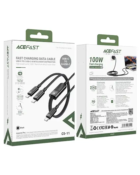 Product name: ACEFAST C5-11 100W USB-C to 2xUSB-C charging data cable.