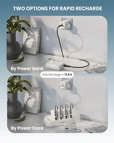 HIGHLY CONVENIENT CHARGING DOCK: The included charging dock is not just convenient; it’s a game-changer. Simultaneously charge all five mini power banks, thanks to its smart design.