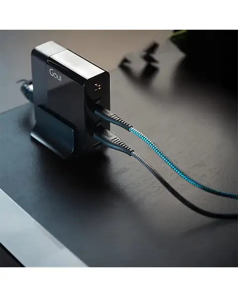 Cable: Cable 150 cm Qualcomm Quick Charge 3.0 Power Delivery PD Technology 4 Port Power Delivery PD. USB Power Delivery is a common fast-charging standard that can be implemented in all USB-powered gadget Qualcomm 3.0. Qualcomm quick charge 3.0-certified smartphones use Intelligent Negotiation for Optimum Voltage (INOV), a charging protocol that lets your smartphone select any voltage between 3.2V to 20V Input: AC 100-240V, 50/60Hz, 2.5A Output: USB – C1 : DC (5.0V/3.0A 15.0W, 9.0/3.0A 27.0W, 12.0V/3.0A 36.0W, 15.0V/3.0A 45.0V, 20.0V/5.0A 100.0WV) USB – C2: DC (5.0V/3.0A 15.0W, 9.0/3.0A 27.0W, 12.0V/3.0A 36.0W, 15.0V/3.0A 45.OW, 20.0V/5.0A 100.OW)