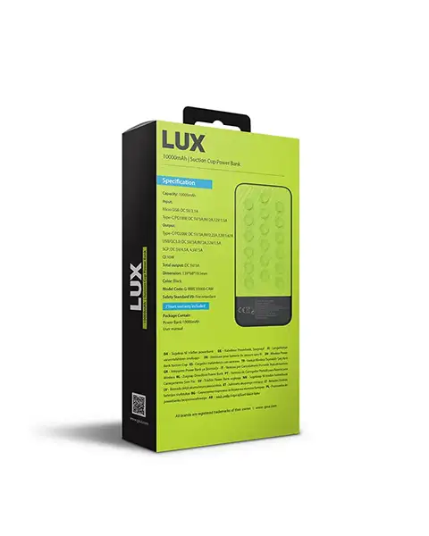 LUX 10000mAh QI Power bank Type C Rubber Suction Cup
