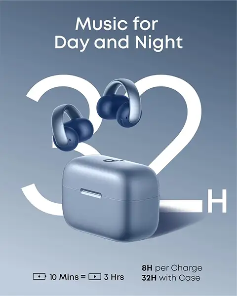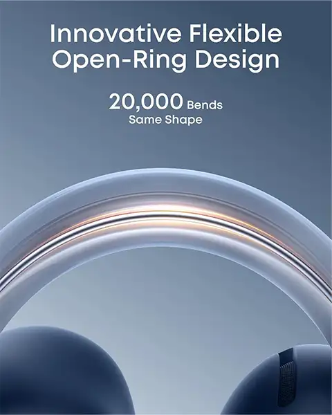 Flexible, Secure Fit: soundcore AeroClip clip-on earbuds boast an adaptive open-ring design that endures 20,000 bends. Feather-light and flexible, they stay secure for all-day wear.