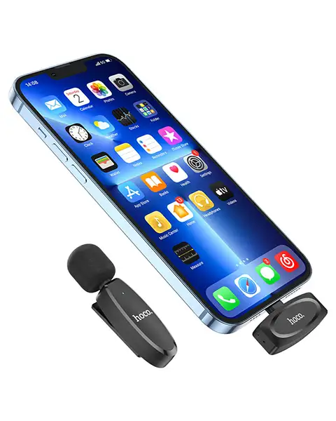 HOCO L15 Wireless Lavalier Microphone For iPhone 2.4GHZ Portable Mini Audio Video Recording MIC Live Broadcast Microphone L15 For iPhone Lavalier Wireless Microphone Feature? 1. Omnidirectional electret 2. Receiver audio plug: For iPhone plug 3. Mobile phones and tablets compatible For IOS interface support system upgrade 4. Battery capacity: 70mAh (button battery) 5. Service time: 6 hours 6. Weight: 12g