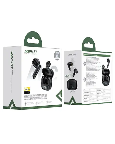 ACEFAST W2 TWS Bluetooth-Compatible Earbuds Active Noise Cancelling Earphones with LED Display Charging Case