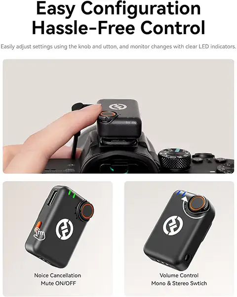 Easy Control & Monitoring: Simplify your recording experience with the LarkSound App. Check battery life, adjust volume, monitor connections, and fine-tune noise cancellation levels to meet your recording needs effortlessly.