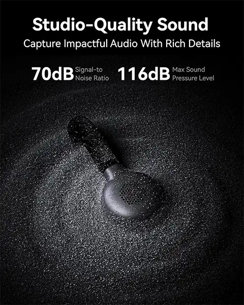 High-Fidelity, Capture Rich Detail: Capture rich details with 24-bit/48kHz sampling rate for crystal-clear, natural audio. A 70dB SNR minimizes background noise, while the 116dB SPL ensures low distortion for loud sources. Create professional, true-to-life recordings effortlessly.