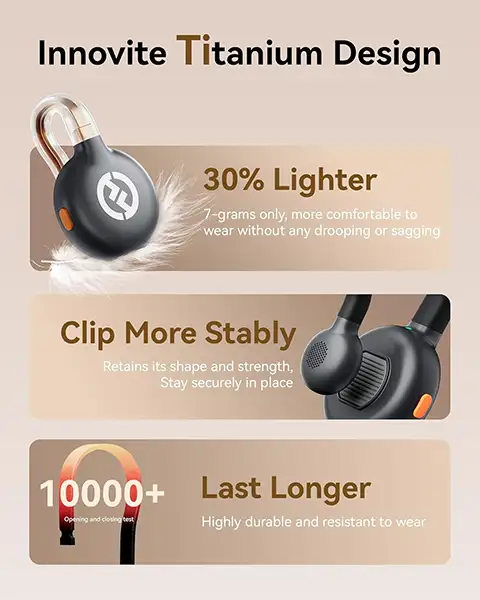 Innovative Titanium Clip-on Design: With exceptional structural stability and durability, LARK M2S's innovative titanium clip-on design keeps your microphone securely in place, significantly enhancing the comfort and user experience, even during high-intensity activities like sports, cycling, or running.