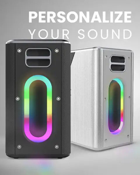 Your non-stop party vibe is backed by a 100W output power with our wireless karaoke speaker MusicBox. Now you can make a party rock and listen to your favourite tracks as loud as you want. The Two Tweeters in the MusicBox karaoke speaker handle the high-frequency vocals and melodies, while the Two Woofers produce the powerful bass and low-frequency sounds, creating a balanced and immersive audio experience.