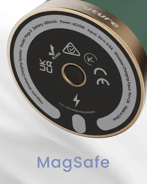 Experience better sound and the best vibe with the HiFuture Mega S Bluetooth Speaker—a sleek and powerful 5W speaker designed to elevate your personal time with crystal-clear audio and deep, immersive beats. Featuring a built-in MEGA S phone holder, it lets you snap your device into place effortlessly, combining wireless convenience with stylish functionality. Powered by Bluetooth 5.4, enjoy lag-free, ultra-stable audio streaming, whether you're listening to playlists, watching movies, or gaming. The TWS pairing mode lets you double up the sound by connecting two speakers for a true stereo experience. With 10 hours of playtime, 7.5W–15W wireless charging support
