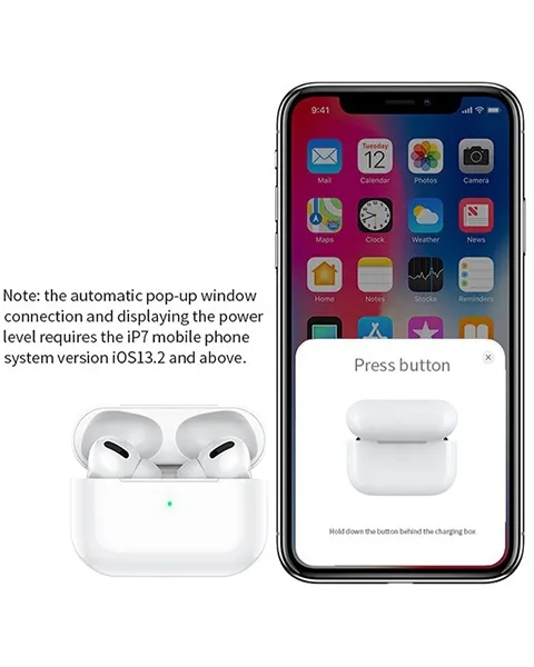 Support the pop-up window of Apple mobile phone (iphone7 and later versions of iOS system upgrade to 13.2 version), support iPhone to change the Pairing name, support “Hey, Siriâ€; in-ear detection support music playback, support Apple phone “Find App†“Positioning; three true power display of charging compartment/left and right earphones(With black silicone sleeve)