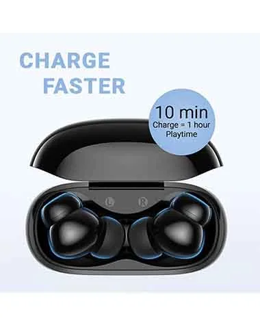 Long-Life Buds: Playtime lasts for 6.5 hours from a single charge which extends to 25 hours with the compact charging case. A 10-minute charge gives you 1 full hour of use.