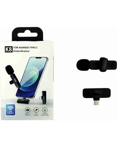K8 Wireless Microphone With built-in noise reduction chip, the K8 wireless microphone has strong anti-interference ability to effectively identify and record original sound distinctly in noisy environment. Using high-density anti-spray sponge and high-sensitivity probe, it can receive sound 360 degrees with rapid response and fine reception. It is made of high-quality ABS material, which is lightweight and durable. The length of the K8 wireless microphone is 6.5cm, the width is 1.85cm and the height is 2.6cm.