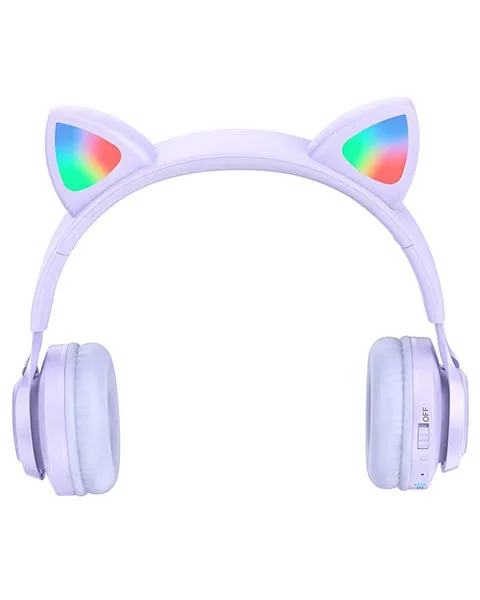 The Bluetooth headset HOCO W39 Cat Ear Kids BT5.3, AUX/MicroUSB, consignment note, LED, "ears" (lilac) has a