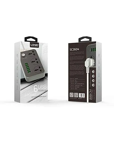 LDNIO Universal Power Strip 2500W 10A 6 USB Ports 3.4 A - 2m Cord