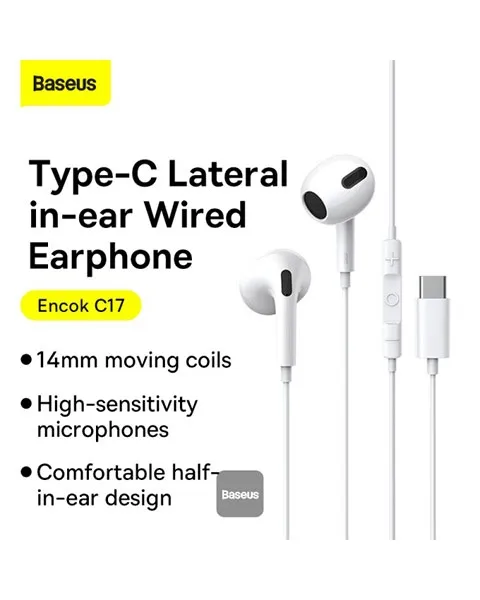 Baseus Encok C17 are in-ear headphones with USB-C output that are designed to bring your musical experience to a whole new level. Special polymer membranes provide detailed sound with very high quality, and the sensitive microphone takes care of crystal clear sound transmission.