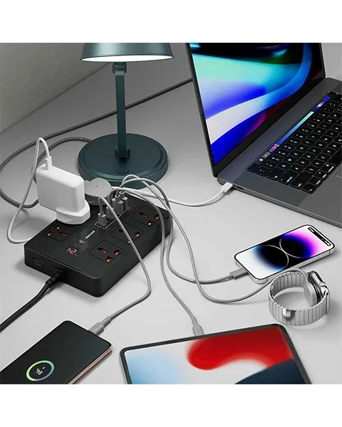 An organized and tranquil work environment is provided by the Porodo multi-port super hub. There is no longer a need for several USB or wall chargers. The 6 AC outlets and 6 USB ports are sufficient to meet all of your charging needs.