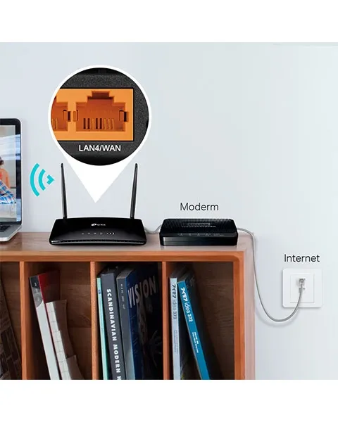With the inclusion of the WAN/LAN port, the TL-MR6400 can also support a wide variety of connection types, including cable, fiber, and DSL modems.
