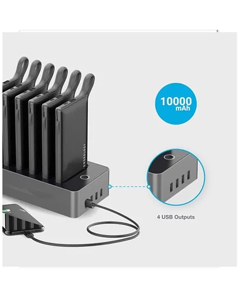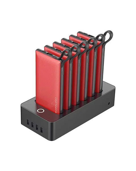 Each Power Bank is equipped with Built-in cables that include micro USB, Type-C and lightning Additionally, 4 USB Output can be found on the docking station.