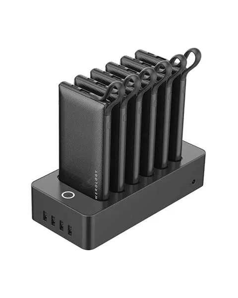Each Power Bank is equipped with Built-in cables that include micro USB, Type-C and lightning Additionally, 4 USB Output can be found on the docking station.