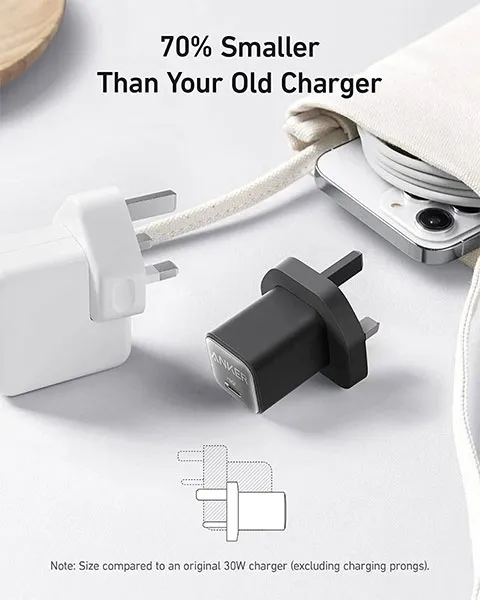 Small Yet Powerful: By swapping out silicon for GaN we’ve been able to fit 30W of power into a charger that’s just 1.12 inches thick, and 70% smaller than an original 30W charger.