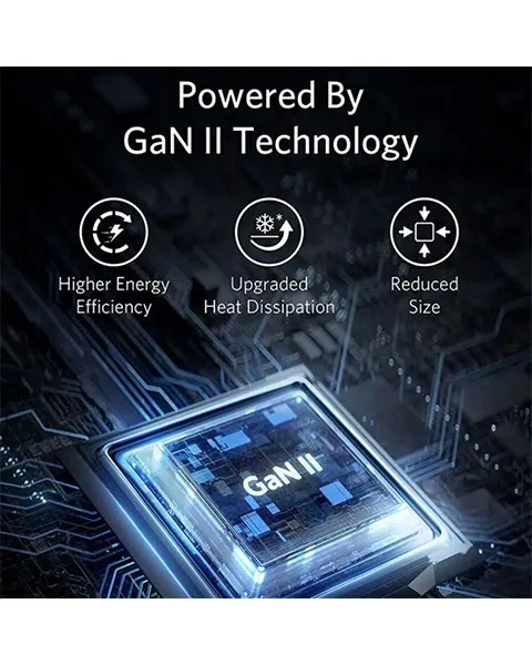 Powered by GaN II Technology: With a 100% increase in operating frequency, an innovative stacked design, and an upgraded circuit board structure, GaN II technology makes our latest charger smaller without sacrificing a drop of power.