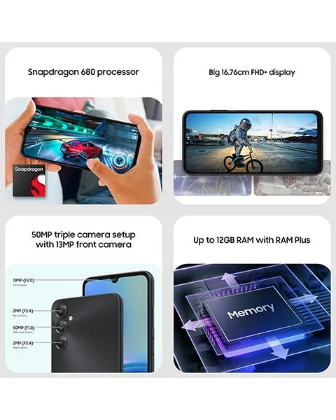 The Samsung Galaxy A05s is a noteworthy addition to Samsung's Galaxy A series, offering users an impressive set of features at an affordable price point. At the heart of the device lies the Qualcomm SM6225 Snapdragon 680 4G chipset, built on a 6nm process. This powerful chipset ensures smooth performance and efficient multitasking, making the Galaxy A05s a reliable companion for daily tasks.