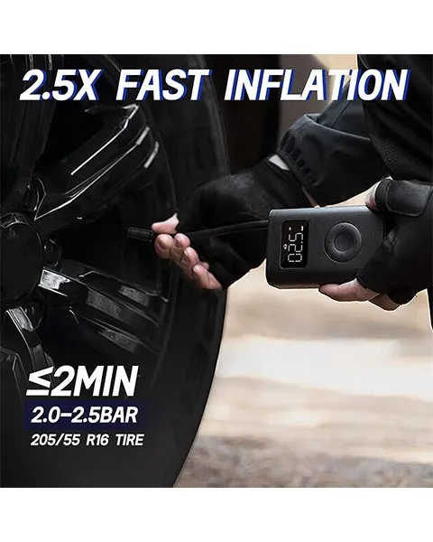 1. The compressor sports a 25% higher boost in speed compared with compressor 1S. It can fill an empty tire just in 8 minutes