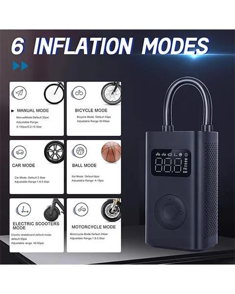 4. Six preset inflation modes, switch six modes in one button and set default air pressure range to avoid over-inflation