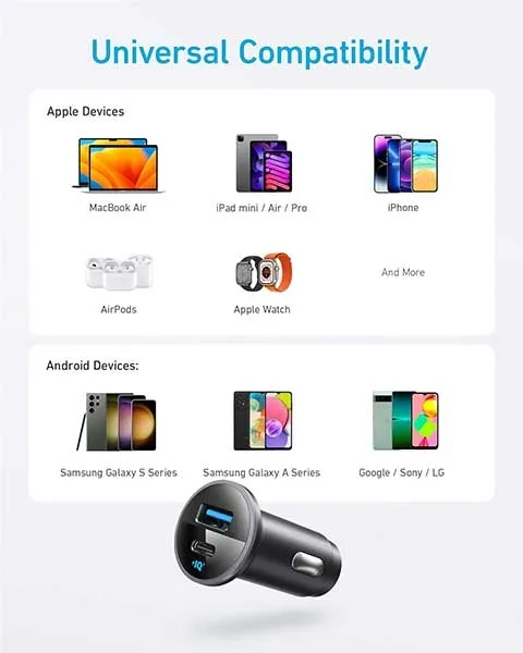 Included Components Anker 323 car charger (52.5 W)