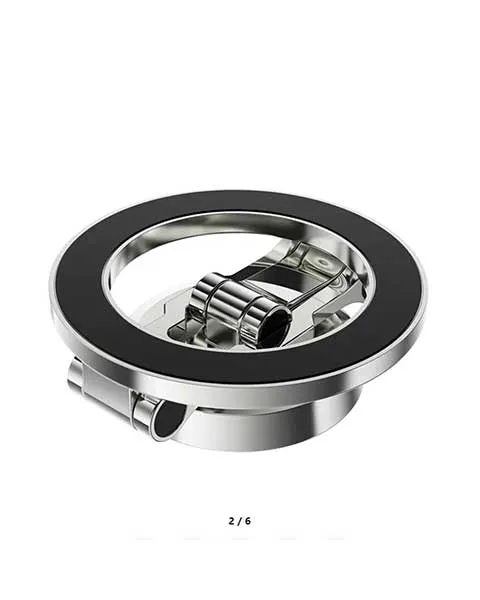 Foldable car holder with ring-shaped strong magnetic suction, featuring 3-axis linkage for adjustable angles.