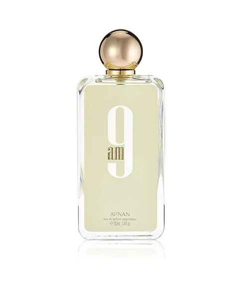 Afnan 9Am Cologne by Afnan, Light and fresh with an earthy undertone, Afnan 9Am is an enchanting fragrance that can be worn by both men and women. It is ideal for everyday wear. Featuring top notes of spicy pink pepper, juicy mandarin orange, nutty cardamom and zesty citron, this fragrance opens with a bright, fruit accord laced with spiciness. Heart notes of rose, lavender and orange blossom incorporate floralcy while a juicy note of green apple livens up the perfume. The fragrance rests upon an earthy foundation of moss, cedar, musk and patchouli. It was released in 2019.