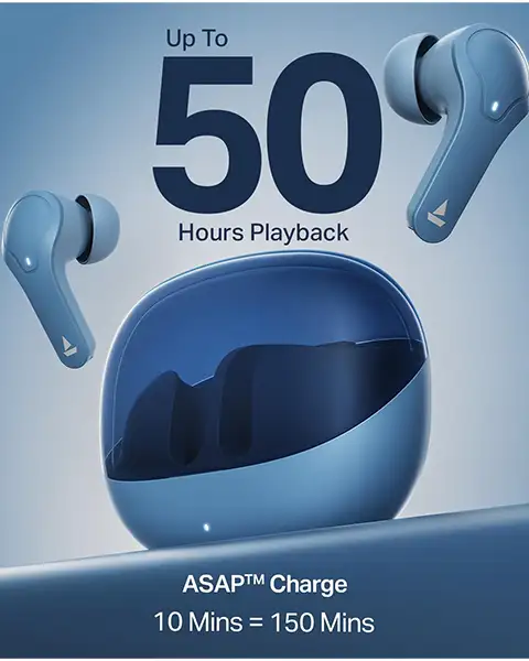 Relax to mellow tunes or dive into fast-paced action movies with the boAt Airdopes Plus 311 TWS Earbuds. Boasting an impressive 50 hours of playtime, these earbuds are every audiophile’s constant entertainment companion. Tune into podcasts while commuting with the bass-heavy boAt Signature Sound from the 10 mm dual drivers. And, when your Airdopes are low on charge, ASAP™ Charge them to get 150 minutes of usage after just 10 minutes of charging. Also, you can both game and stream without frequent charging woes. To experience audio bliss, simply flip open the lid and connect to the sound with IWP™ technology. Juggle your hustles effortlessly with the easy voice assistant activation. Set up meetings, call a loved one, and even get local weather updates with voice commands. With dual ENx™-enabled mics, answer calls on the go while flaunting your Airdopes. Not one to leave you behind in a race, the 50 ms low-latency of the gaming BEAST™ mode eliminates lag for seamless gaming with your squad. Also a perfect travel audio companion, Airdopes Plus 311’s IPX4 resistance wards off sweat and splashes for grooving without worries!